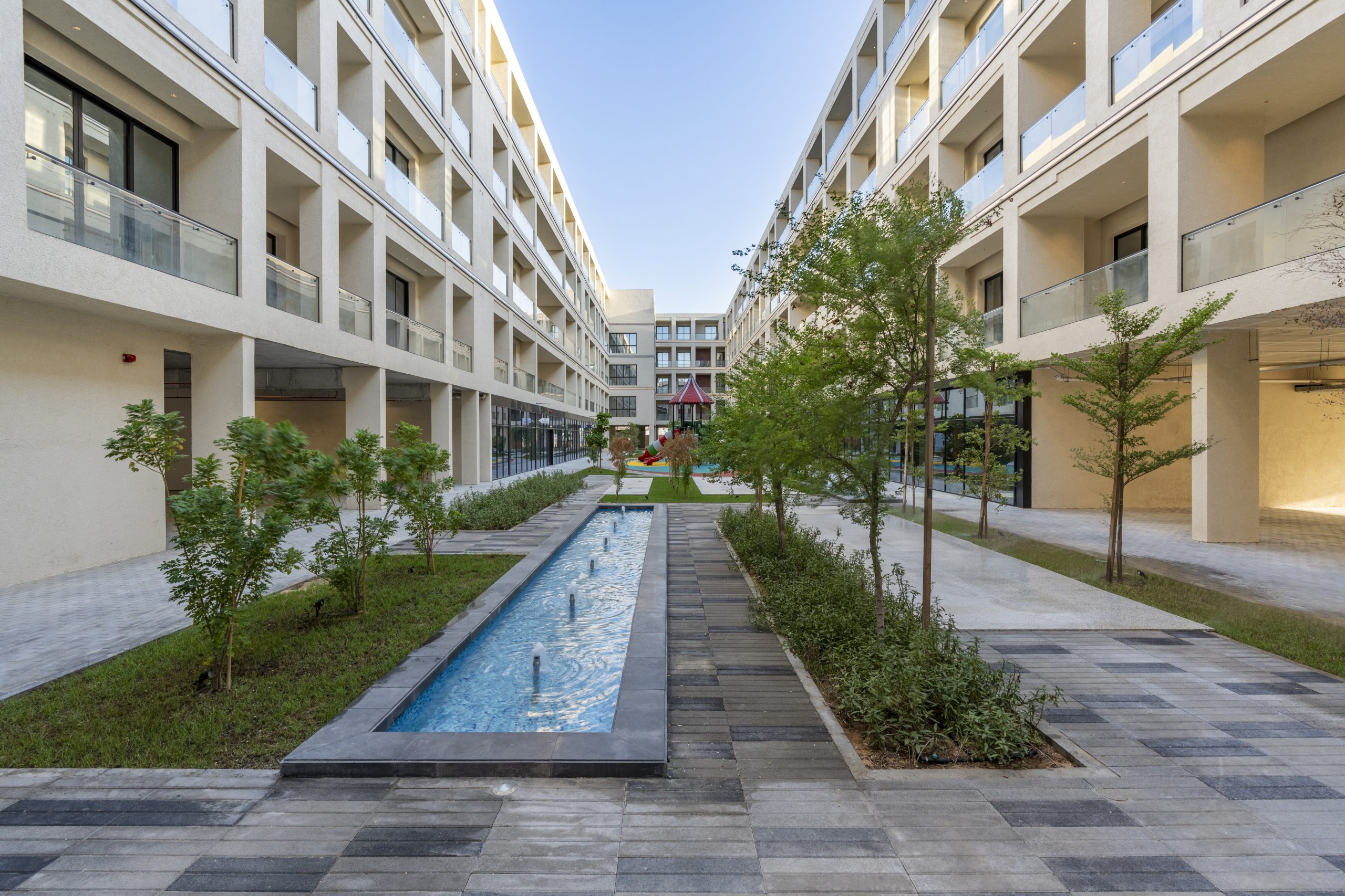 - Wide green spaces and areas for walking and sports.